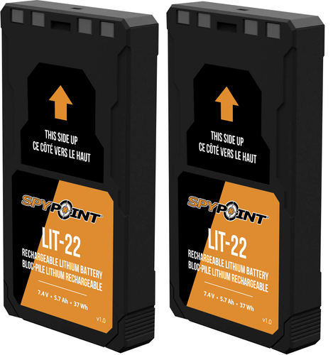 Akumulator o pojemności 5700 mAh oferuje do dwóch razy dłuższy czas pracy niż konwencjonalne baterie alkaliczne R8 (AA) i zapewnia ciągłe nagrywanie bez przerwy. Dzięki dołączonemu kablowi ładującemu USB-C z łatwością naładujesz akumulator, a wbudowany wskaźnik poziomu naładowania pokazuje aktualny poziom naładowania. SPYPOINT LIT-22 oferuje długą żywotność baterii i niezawodną wydajność dla serii SPYPOINT FLEX!
