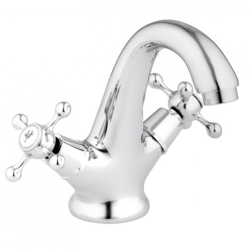 Mechaniczna bateria umywalkowa, stojąca, dwuuchwytowa ze stałą wylewką.