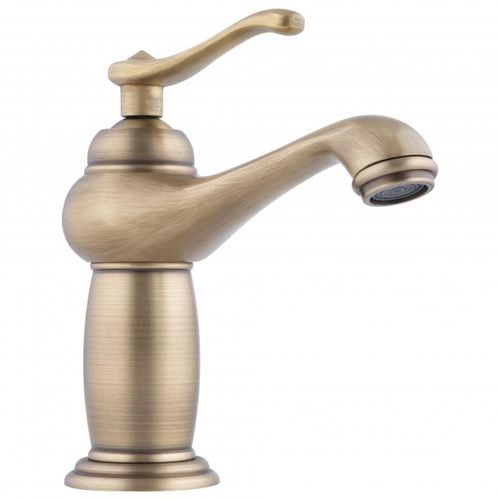 Mechaniczna bateria umywalkowa, stojąca, jednouchwytowa ze stałą wylewką. Bateria wykonana w stylu retro/vintage w kolorze złotym. Głowica ceramiczna 35mm. Korpus baterii wykonano z mosiądzu.