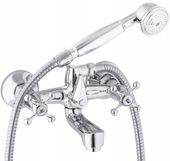 Bateria ta gwarantuje niezawodność w codziennym użytkowaniu, z dwoma uchwytami w stylu retro oznaczonymi "HOT" i "COLD", które intuicyjnie regulują temperaturę i ciśnienie. Jej ścienna konstrukcja ze stałą wylewką i dołączoną słuchawką prysznicową umożliwia płynne przechodzenie między kąpielą w wannie a prysznicem, zapewniając komfort bez kompromisów.