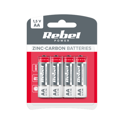 Baterie cynkowo-węglowe Rebel R6 w rozmiarze AA to ekonomiczne rozwiązanie do zasilania urządzeń o niewielkim poborze energii. Są idealne do zastosowania w codziennych urządzeniach, takich jak piloty zdalnego sterowania, latarki diodowe, zegary ścienne oraz inne małe akcesoria elektroniczne. Opakowanie zawiera 4 sztuki baterii, co zapewnia praktyczny zapas do użytku domowego i biurowego.