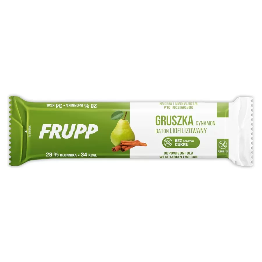 Baton FRUPP gruszka z cynamonem stworzyliśmy z myślą o konsumentach szukujących polskich smaków.Po prostu pyszna, owocowa przekąska dla dzieci! Nie ma dodatku tłuszczu i soli!