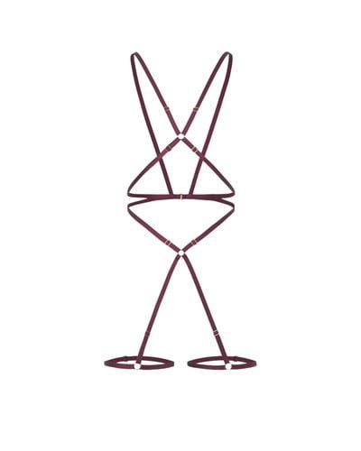 Głęboki burgundowy odcień podkreśla sensualność i tajemniczy charakter bielizny, sprawiając, że body harness idealnie komponuje się zarówno z erotycznymi stylizacjami, jak i jako ekstrawagancki dodatek noszony na odzież. Świetnie współgra z Body Batty z tej samej kolekcji, tworząc pełen namiętności komplet, który rozpala wyobraźnię i uwodzi każdym detalem.