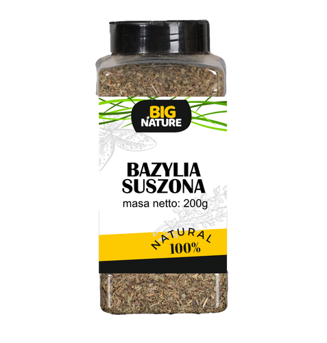 Bazylia to przyprawa pochodząca z liści i kwiatostanów tej rośliny, szeroko stosowana w kuchniach śródziemnomorskich, takich jak włoska, grecka czy francuska. Jej naturalny, świeży aromat uzupełnia smaku dań głównych, sałatek, sosów oraz pizzy. Suszona bazylia zachowuje intensywność smaku, co czyni ją doskonałym wyborem do przyprawiania potraw bez konieczności stosowania świeżych ziół.