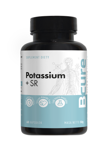 Suplement diety BCure Potas Plus SR to innowacyjny produkt stanowiący uzupełnienie diety w kluczowy dla organizmu składnik – potas, zamknięty w mikropeletkach o przedłużonym uwalnianiu.