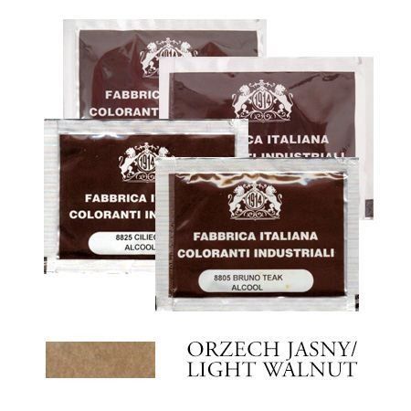 Bejca spirytusowa orzech jasny to wysokiej jakości produkt włoski przeznaczony do uzyskania intensywnego koloru drewna. Każda saszetka zawiera 8 g proszku, który należy rozpuścić w spirytusie w proporcji: 1 saszetka na 250 - 500 ml spirytusu. Stopień nasycenia koloru zależy od ilości użytego spirytusu, co pozwala na dostosowanie efektu do indywidualnych potrzeb.