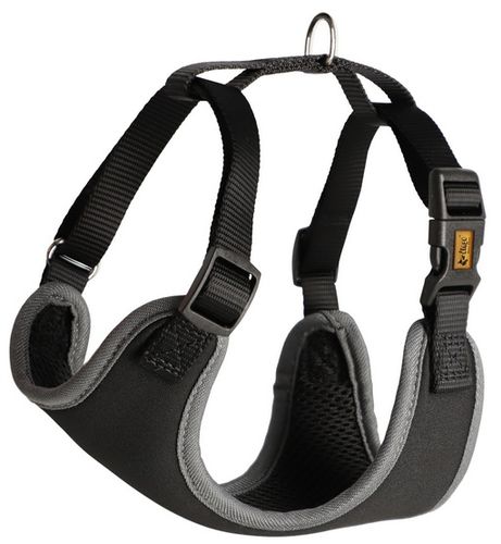 - idealnie dopasowują się do budowy ciała psa dzięki dwupaskowej i bezstopniowej regulacji