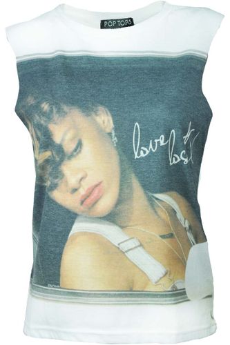 Bluzka firmy Pop Tops (dla Primark) w kolorze białym. Bez rękawów. Z przodu posiada nadruk Rihanny. Z kompletem firmowych metek.