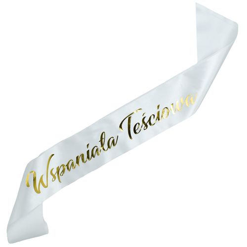 Prezentujemy Państwu biała szarfę ze złotym nadrukiem Wspaniała Teściowa.
