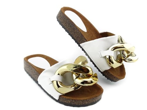 Te białe klapki z dużym łańcuchem to doskonały wybór na każdą letnią przygodę. Ich modny design z dużym łańcuchem przyciąga wzrok i sprawia, że każda stylizacja zyskuje na charakterze. Wykonane z wysokiej jakości skóry ekologicznej, zapewniają maksymalny komfort noszenia oraz łatwość w utrzymaniu czystości.