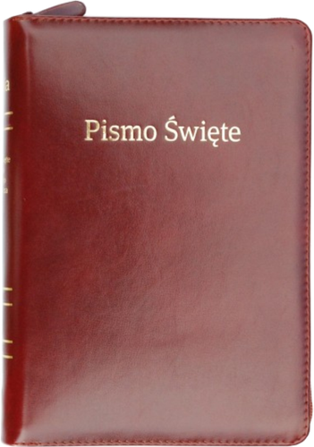 - Biblia duża format oprawa PU skóropodobna, ze złoconymi brzegami kartek, oprawa zamykana na zamek, w kolorze czarnym