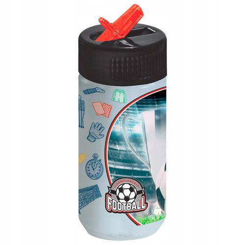 Przezroczysty bidon z nadrukiem o pojemności 330 ml.