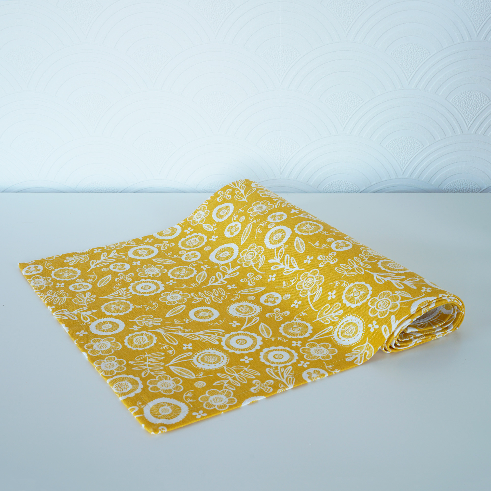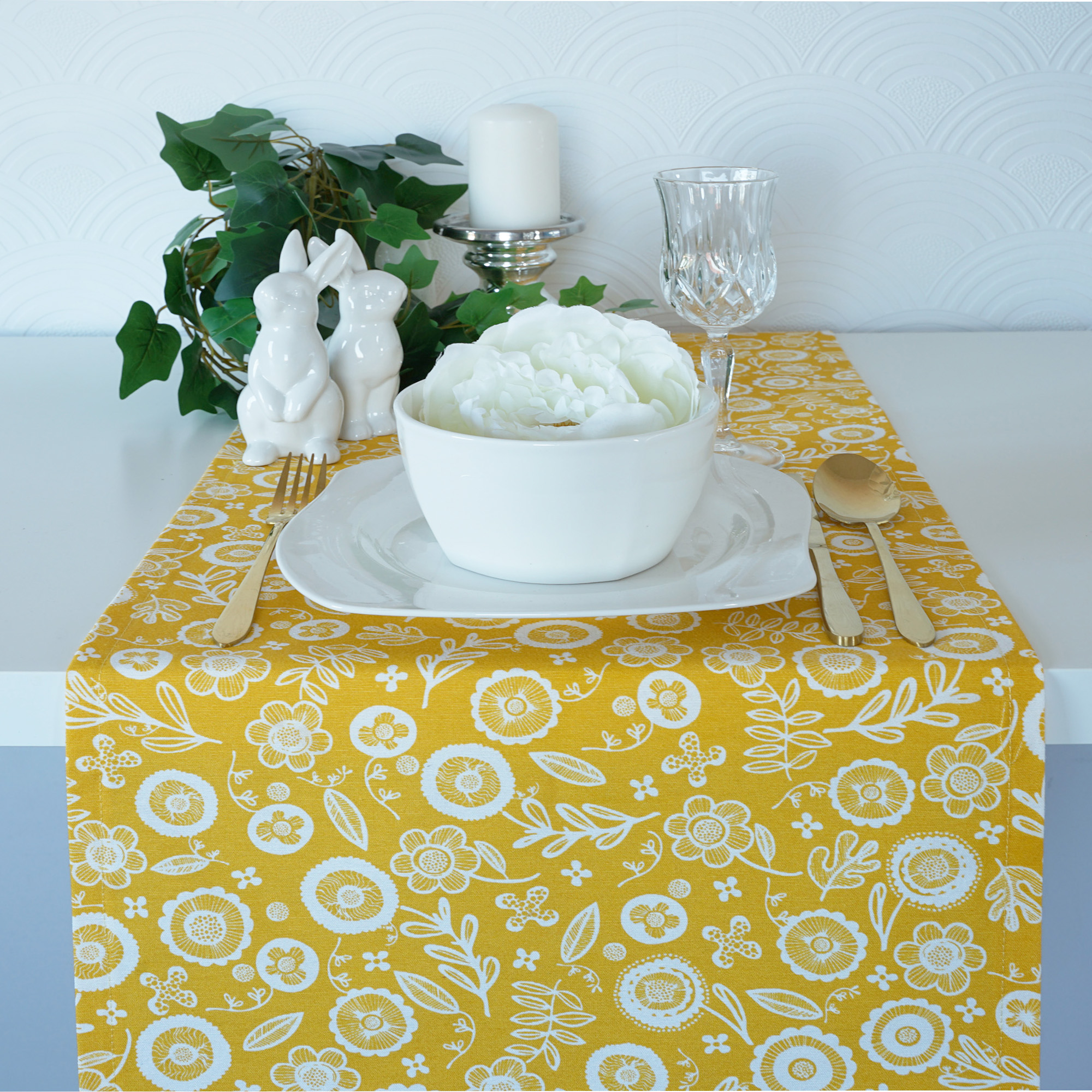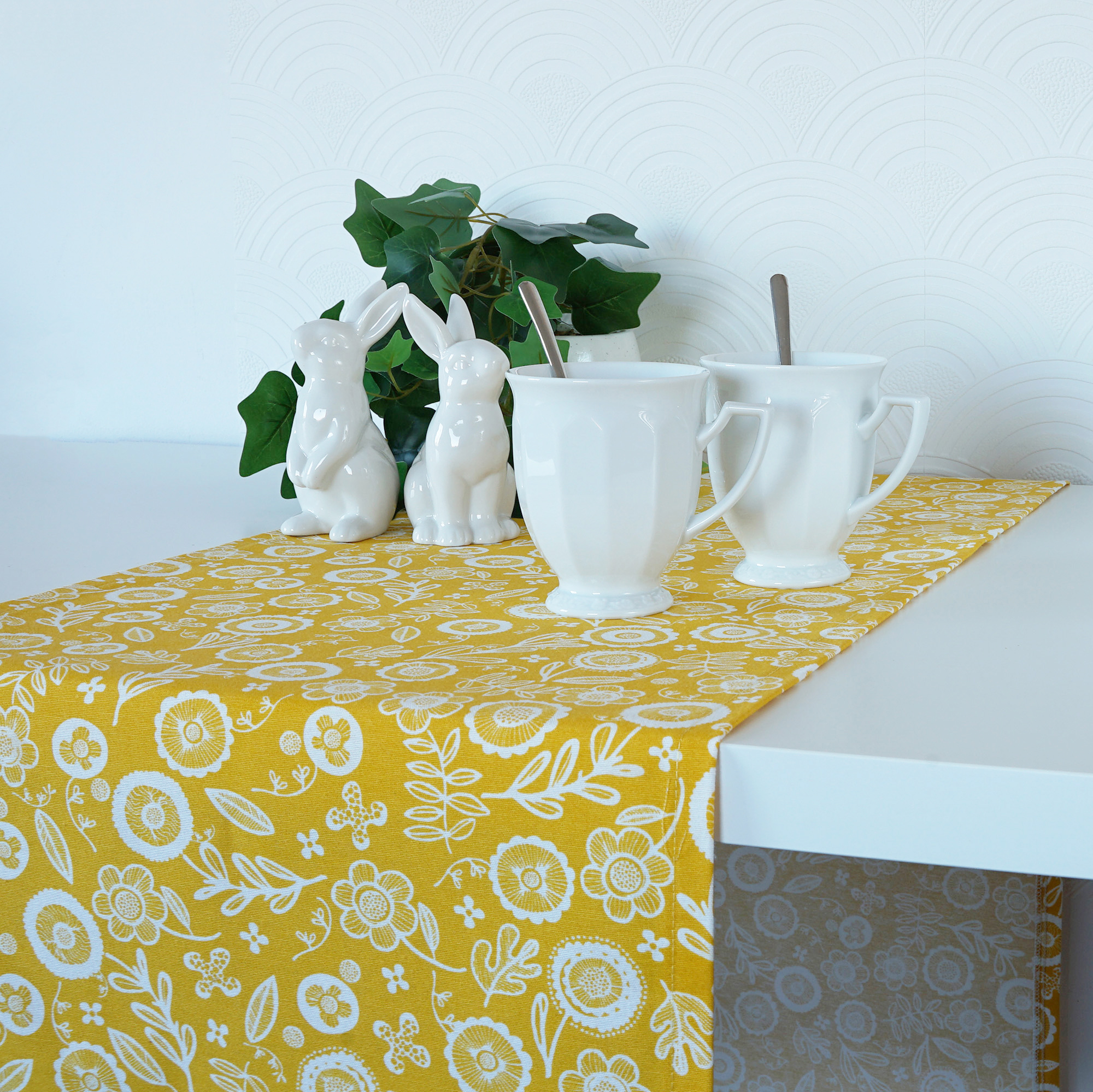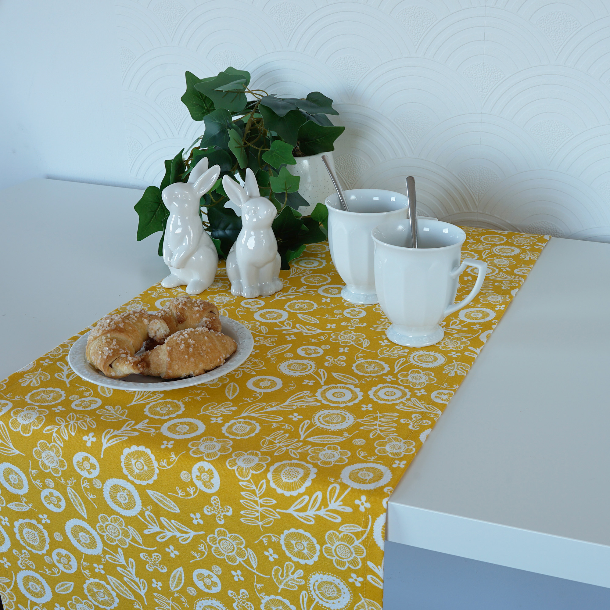 Dzięki zastosowaniu naturalnych materiałów, bieżnik "Żółta Wiosna" jest nie tylko elegancki, ale także bezpieczny dla środowiska. Jego uniwersalny design sprawia, że doskonale wpasuje się w różne style aranżacji wnętrz - od rustykalnych po nowoczesne. Rozświetli każde wnętrze, nadając mu wyjątkowego charakteru.