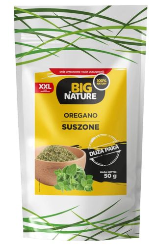 Suszone oregano od Big Nature wyróżnia się doskonałą jakością, a to wszystko za sprawą swojego naturalnego składu, pozbawionego sztucznych dodatków. Na uwagę zasługuje również fakt, że opakowanie zawiera aż 50 g przyprawy, co umożliwia jej długotrwałe stosowanie.