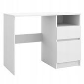 To biurko komputerowe w białym macie o szerokości 100 cm wyróżnia się nowoczesnym designem, który łączy prostotę z elegancją, idealnie pasując do młodzieżowych pokoi czy domowych gabinetów. Wykonane z solidnej płyty laminowanej o grubości 16 mm, zapewnia stabilną konstrukcję, która wytrzymuje codzienne obciążenia, a pojemna szuflada i dwie półki pozwalają na uporządkowane przechowywanie akcesoriów biurowych bez zbędnego chaosu.