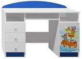 Biurko posiada trzy praktyczne szuflady oraz zamykaną szafkę z półką. Pod blatem znajduje się wysuwana na prowadnicy półka na klawiaturę komputera.