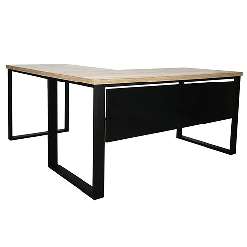 Biurko narożne prawe z blendą 160 cm, Dąb Halifax naturalny blat oraz metalowe nogi