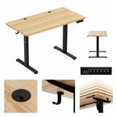 Konstrukcja z solidnego metalowego stelaża i kompozytowego blatu o grubości 1,5 cm gwarantuje trwałość i bezpieczeństwo, podtrzymując do 50 kg bez drgań. Regulowane nóżki zapewniają stabilność na każdej powierzchni, a dodatkowe uchwyt na słuchawki, wieszaki na torbę czy plecak oraz porty do kabli pomagają utrzymać porządek, czyniąc przestrzeń pracy intuicyjną i wolną od chaosu.