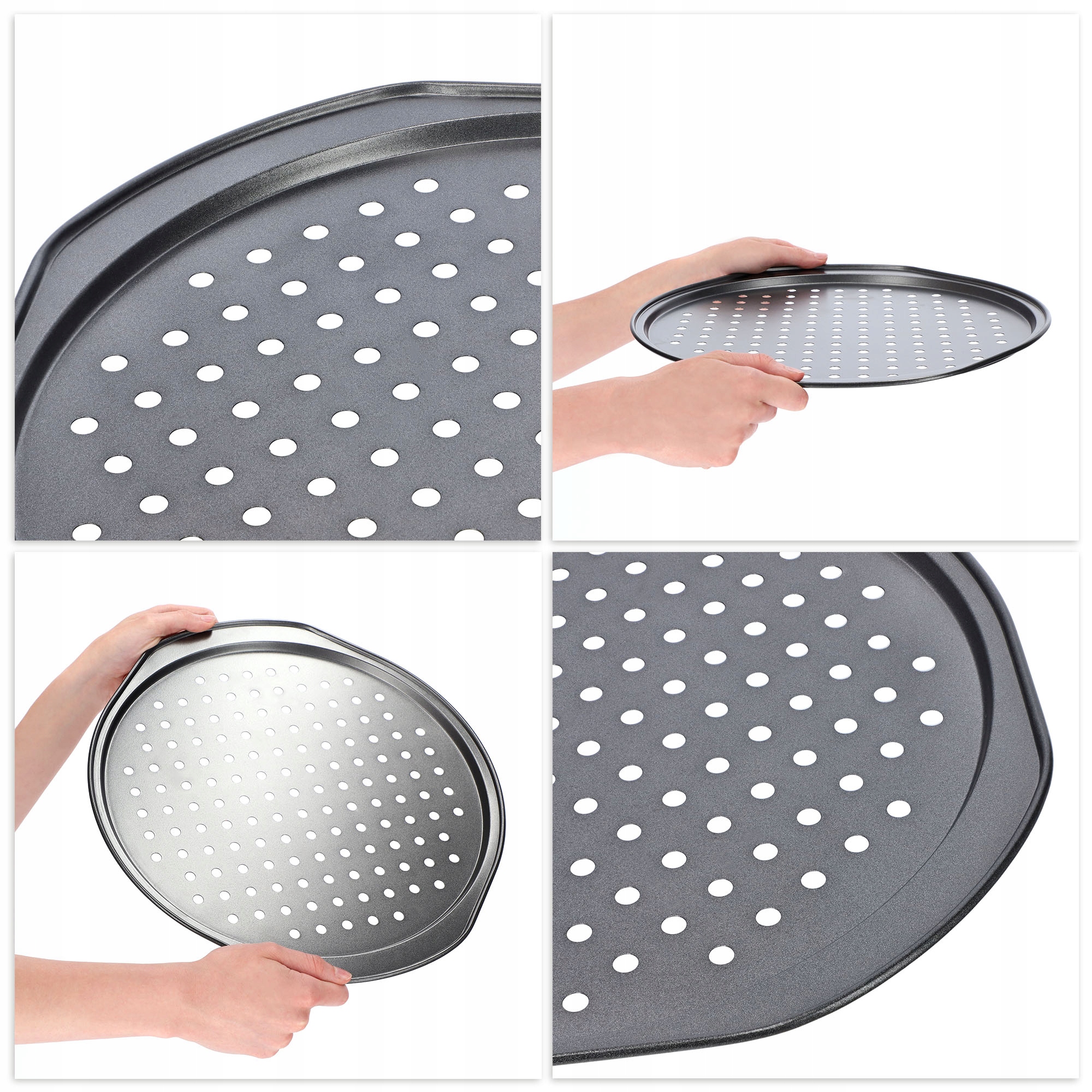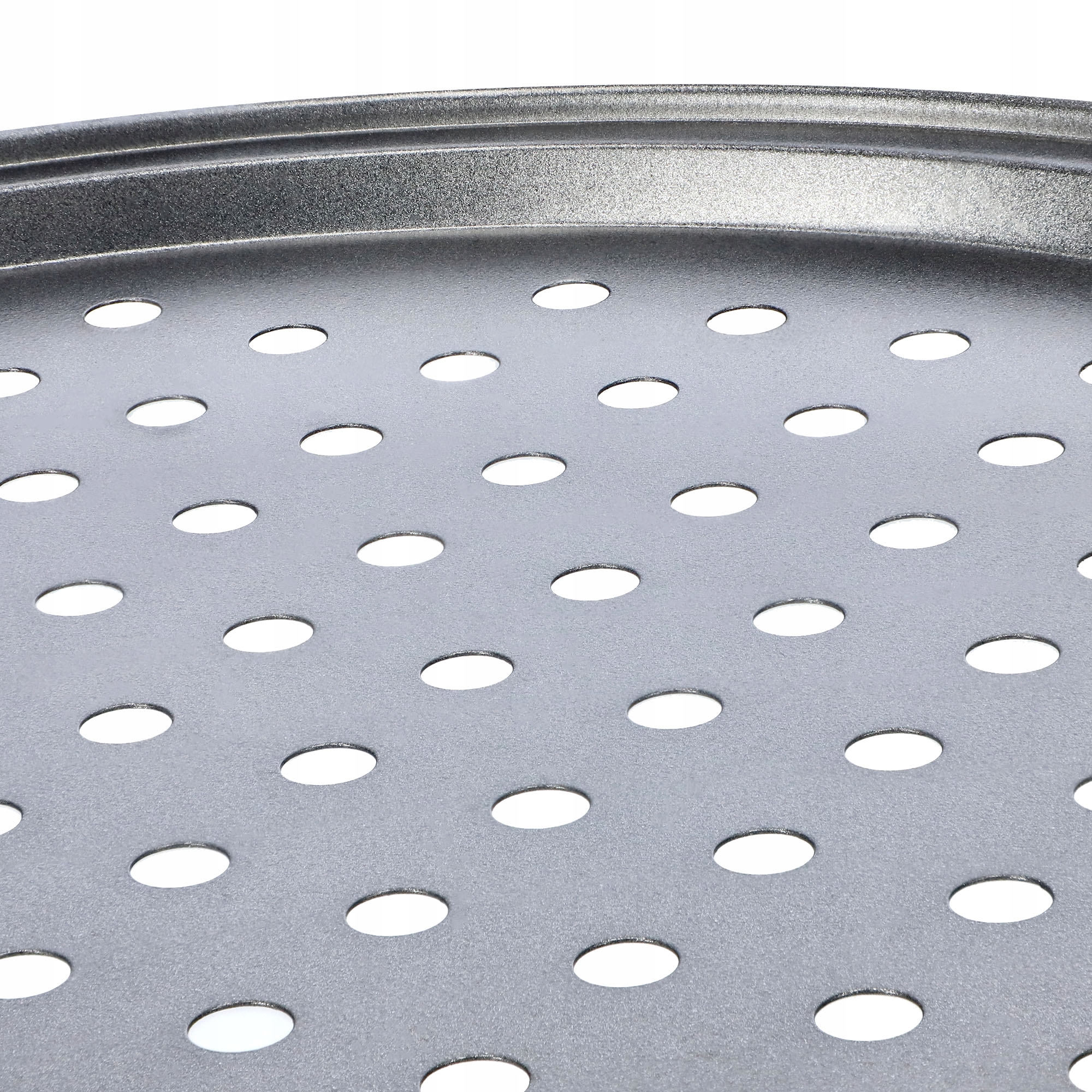 Nasza forma do pizzy o średnicy 31 cm została stworzona z myślą o nawet najbardziej wymagających szefach kuchni. Dzięki specjalnej nieprzywierającej powłoce perforowanej ciasto swobodnie odchodzi od powierzchni, co pozwala na łatwe wyjmowanie gotowej pizzy. Ciesz się idealnie wypieczonym ciastem każdorazowo, bez obaw o problematyczne przyklejanie się do blachy!