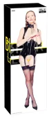 Produkt wykonany z trwałego poliestru pokrytego powłoką poliuretanową, co gwarantuje efektowny połysk i odporność na zagniecenia. W zestawie nie znajdują się stringi ani pończochy.