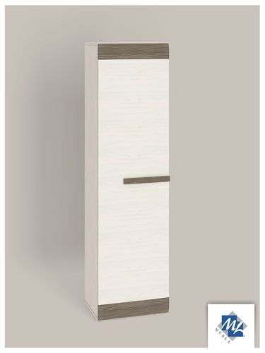 Szafa z 1 drzwiami. Wewnątrz 3 półki oraz uchwyt pozwalający na zawieszenie wieszaków.