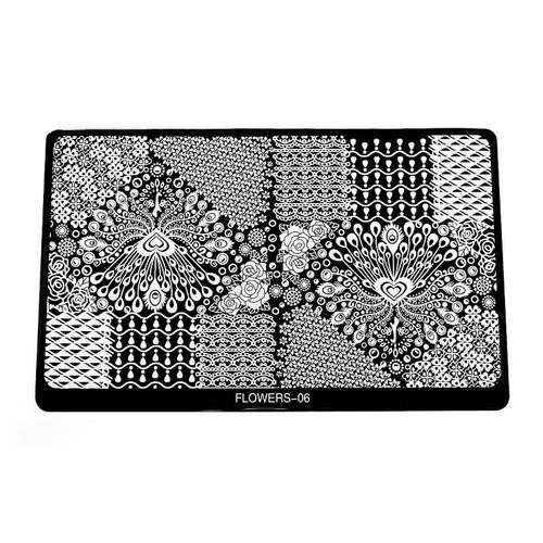 Duża metalowa blaszka do zdobienia paznokci za pomocą stempelków. Posiada niesamowite wzory, dzięki czemu stworzysz niepowtarzalny manicure. Płytka ze wzorkami jest łatwa w utrzymaniu czystości, wystarczy wyczyścić ją zmywaczem.