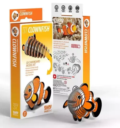 Eugy zaprojektowane w Nowej Zelandii są wykonane z przyjaznego dla środowiska kartonu pochodzącego z recyklingu i farby na bazie ryżu. Zestaw zawiera ponumerowane elementy układanki, nietoksyczny klej oraz instrukcję do zbudowania błazenka. Zbierz całą serię zwierząt, ptaków, dinozaurów i wiele innych. Dla dzieci w wieku 6 lat+.