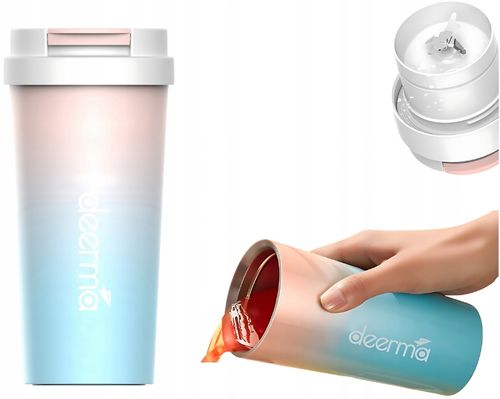 Stylowy, gradientowy design w odcieniach niebieskiego i różowego wyróżnia się na tle innych produktów. Szczelna konstrukcja zapobiega wyciekom, a mały dzióbek minimalizuje ryzyko rozmazywaniu makijażu podczas picia. Materiały użyte do produkcji blendera Deerma są zgodne z normami RoHS – możesz więc zachwycać się ulubionymi napojami bez obaw. Wymiary urządzenia wynoszą 91 x 91 x 200 mm, a jego waga nie przekracza 0,6 kg, dzięki czemu możesz zawsze mieć ulubione napoje przy sobie.