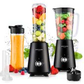 Ten wysokiej jakości blender kielichowy do koktajli i smoothie wyróżnia się swoją wszechstronnością i zaawansowanymi funkcjami. Posiada aż 3 naczynia do miksowania, w tym kielich o pojemności 1 litra oraz 2 bidony tritanowe o pojemnościach 600 ml i 400 ml, dzięki czemu możesz przygotować różnorodne napoje dla całej rodziny.