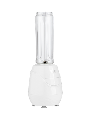 Blender personalny Teesa to propozycja dla osób aktywnych oraz takich, które mimo braku czasu starają się dbać o swoje zdrowie. Urządzenie jest niezwykle łatwe w obsłudze dotrzyma Ci kroku w każdej sytuacji. Wystarczy, że wybierzesz swoje ulubione świeże owoce lub warzywa i dodasz odrobinę jogurtu lub wody. Blender pracuje z prędkością 20000 obrotów na minutę, co w połączeniu z jego mocą 600 W pozwoli szybko zamienić te składniki w wyśmienity koktajl. Co ważne, przyrządzisz go bezpośrednio w 600 ml kubku, który następnie możesz zakręcić dołączoną nakładką ułatwiającą transport i zabrać gdzie tylko chcesz: do pracy, szkoły, na spacer lub na trening.