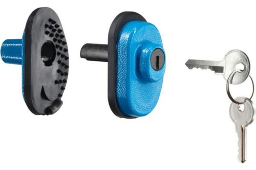 Blokada posiada stalową, trwałą konstrukcję, odporną na udar mechaniczny.