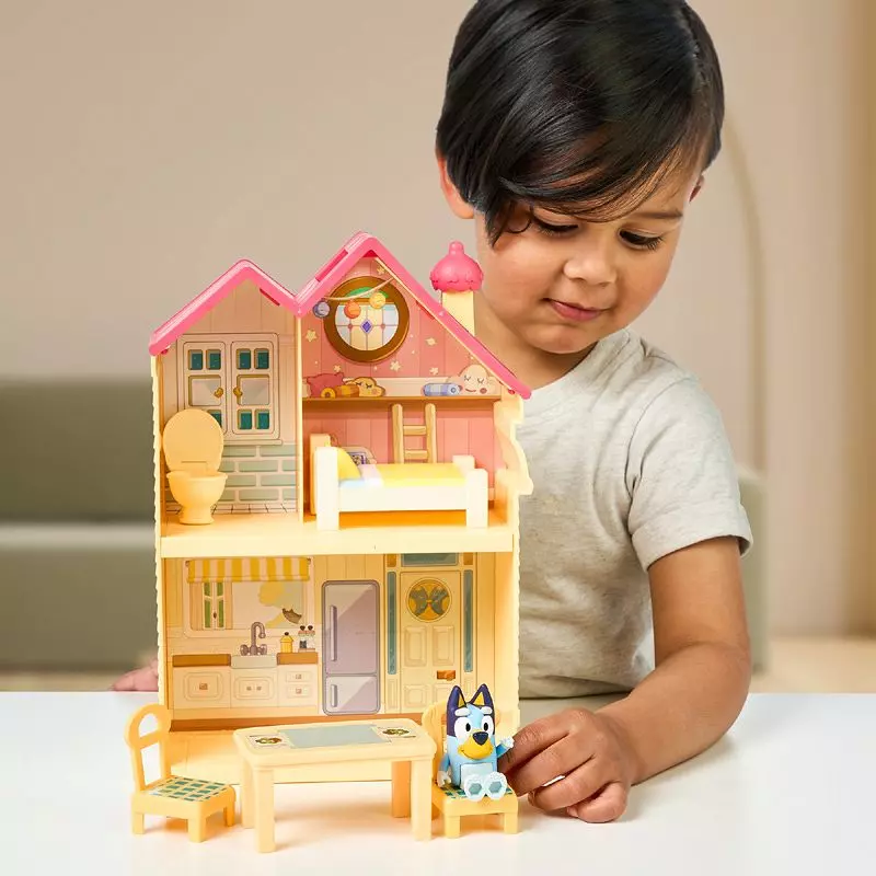 „Bluey” to niezwykle uroczy i zabawny serial o rodzinie czterech przezabawnych psiaków, który pokazuje jak kreatywna zabawa pomaga rozwijać dziecięcą wyobraźnię. Blue, suczka australijskiej rasy Blue Heeler, ma mnóstwo ciekawych pomysłów i uwielbia, gdy domowa codzienność jest przepełniona wesołymi przygodami. Wraz ze swoją młodszą siostrą Bingo, poprzez zabawę, odkrywa świat, pokonując lęki i wypróbowując role dorosłych. Nic tak nie cieszy sióstr, jak wciąganie do swoich zabaw rodziców – szczególnie taty. Mama Czili niedawno wróciła do pracy, a tata Bandżi opiekuje się dziećmi, pracując z domu. Ale choć chciałby myśleć, że to on zawsze dowodzi, to właśnie dziewczynki dyktują warunki w trakcie wspólnych zabaw – i nie tylko! Wkrocz do świata przygód wesołej psiej rodzinki, zmieniając codzienne życie w niekończące się fantazyjne przygody wraz z fantastyczną linią zabawek Bluey. Znajdują się tutaj zestawy figurek, rodzinne autko i domek, które pozwolą odtwarzać filmowe historie oraz tworzyć własne przygody.