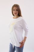 Bluzka Agnesa to świetna opcja do codziennych stylizacji. Wykonana z 90% bawełny i 10% elastanu, zapewnia komfort noszenia i elastyczność. Jej rękaw ¾ dodaje lekkości i swobody, a okrągły dekolt subtelnie podkreśla szyję i dekolt, dodając kobiecego wdzięku. Wyjątkowy detal tej bluzki to cekinowe piórko, które przyciąga wzrok i nadaje bluzce niepowtarzalnego blasku. To wyrafinowane połączenie piórka i cekinów tworzy wzór, który stanowczo dodaje bluzce charakteru.