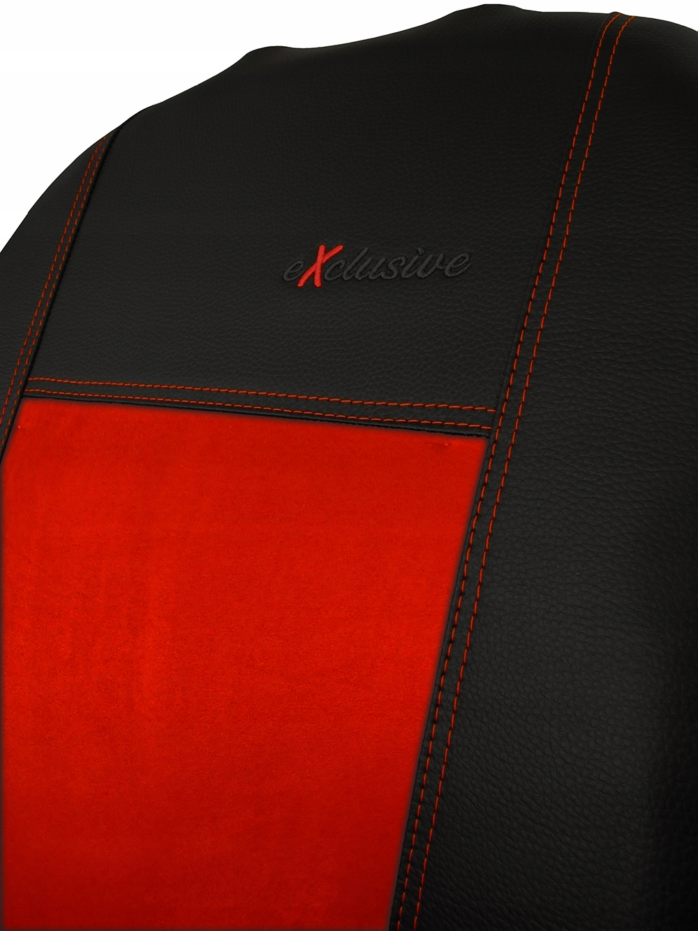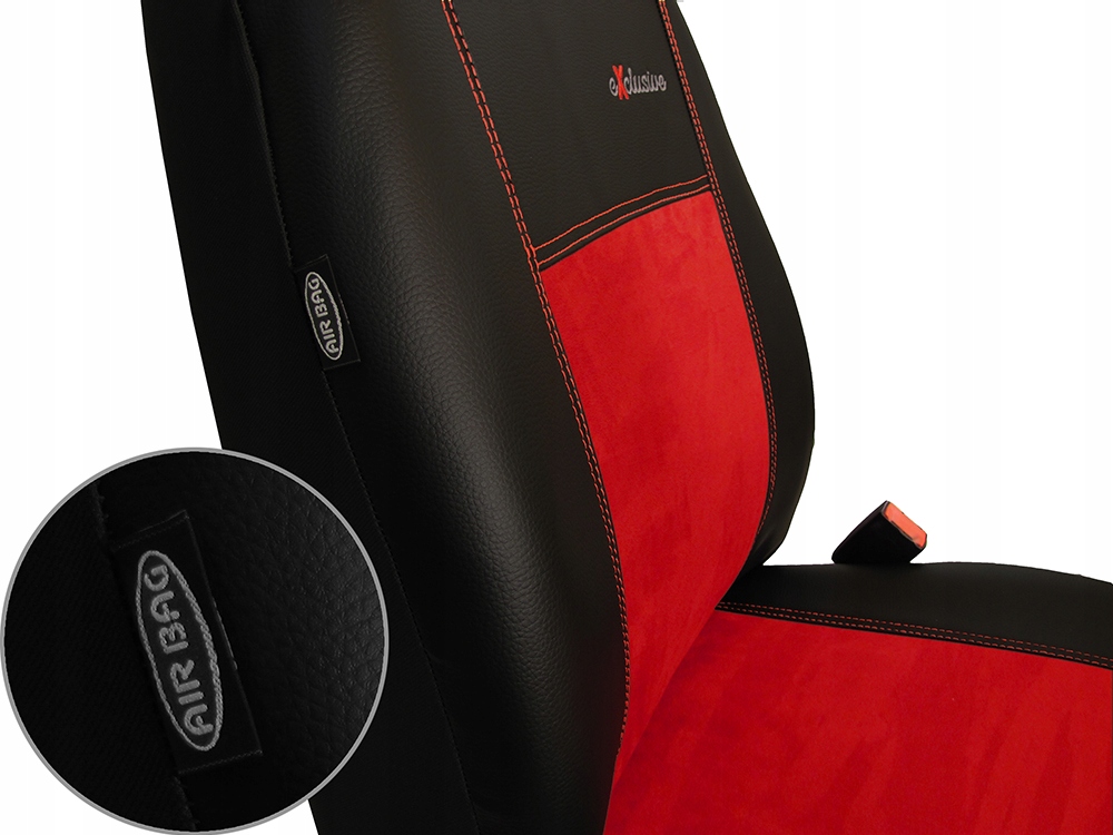 Pokrowce samochodowe EXCLUSIVE o unikatowe połączenie boków z ekoskóry z pasem środkowym wykonanym z alkantary. Wyjątkowość, a zarazem atrakcyjność tego produktu tkwi we wzorze oraz oryginalnym zestawieniu kolorystycznym . Zaletami zastosowanego do produkcji pokrowców EXCLUSIVE materiału jest trwałość, nieprzemakalność oraz łatwość w utrzymaniu czystości. Pokrowce wykończone są eleganckimi przeszyciami ze stębnówki, do których użyte zostały specjalistyczne grube nici ( w kolorze wypełnienia), co bardzo podnosi walory estetyczne pokrowców oraz pozytywnie wpływa na ich trwałość. Dodatkowo na pokrowcach przednich foteli został zamieszczony haft EXCLUSIVE.