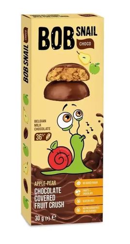 BOB SNAIL Przekąska jabłko gruszka w mlecznej belgijskiej czekoladzie 30 g to wyjątkowa kompozycja smaków, która sprosta oczekiwaniom nawet najbardziej wymagających smakoszy. Delikatne kawałki suszonych owoców jabłka i gruszki zostały otulone warstwą aksamitnej mlecznej czekolady, tworząc prawdziwą harmonię smaków.