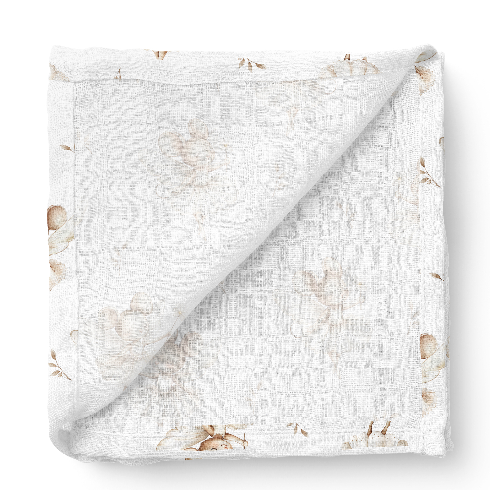 Dzięki dużemu rozmiarowi 110 x 110 cm pieluszka może towarzyszyć dziecku przez lata – jako otulacz, kocyk czy delikatne okrycie w ciepłe dni.