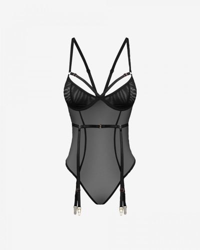 Cornelia Body to zmysłowa propozycja dla kobiet, które kochają nowoczesne fasony i efektowne detale. Wykonane z elastycznej, czarnej siatki, perfekcyjnie dopasowuje się do sylwetki, podkreślając jej kształty. Wszyte fiszbiny doskonale podtrzymują biust, zapewniając komfort i stabilność nawet podczas dłuższego noszenia.