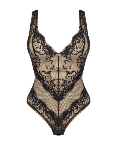 Body Olvidia łączy w sobie kobiecą delikatność i wyrafinowaną estetykę. Kwiatowa koronka z przodu, podszyta beżową siateczką, tworzy subtelny efekt prześwitu, a wycięcie na plecach pięknie podkreśla linię talii. Usztywniane miseczki z fiszbinami dbają o efektowny wygląd biustu, a zapięcie w kroku i regulowane ramiączka sprawiają, że model jest nie tylko zmysłowy, ale i praktyczny.