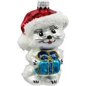 • Szklana bombka choinkowa w kształcie kotka z prezentem