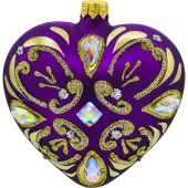 Bombka serce w kolorze fioletu z złotymi zdobieniami i kryształami to doskonały wybór dla osób, które poszukują luksusowej ozdoby choinkowej, wyróżniającej się elegancją i wysoką jakością wykonania. Bogate zdobienia oraz intensywny, królewski fiolet sprawiają, że bombka idealnie wpisuje się w świąteczne dekoracje, dodając im klasycznego uroku i blasku. To inwestycja w piękno, które przetrwa wiele sezonów, wprowadzając do Twojego domu świąteczną atmosferę.
