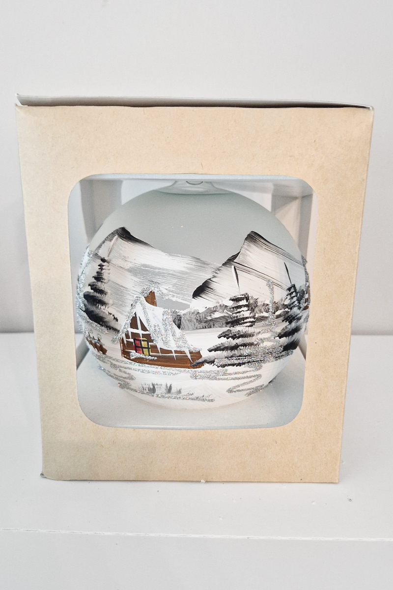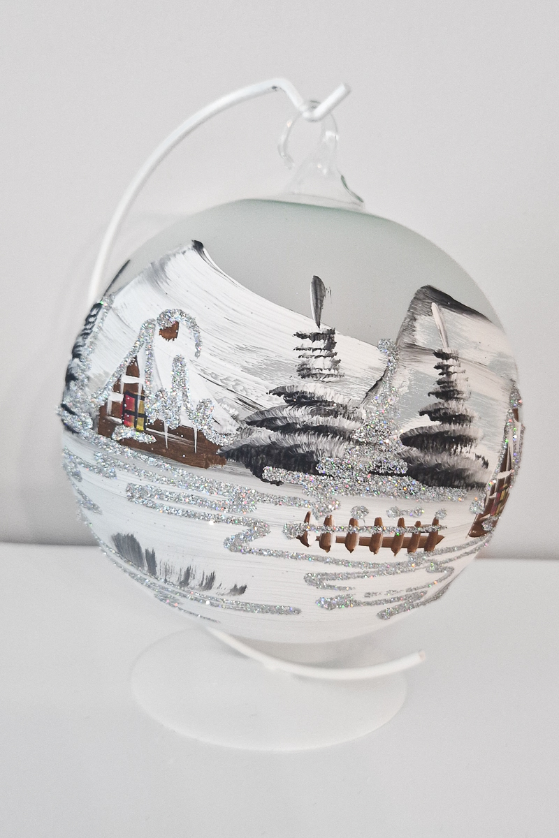 Dodaj swojemu wnętrzu odrobinę magii dzięki unikatowej, ręcznie wykonanej szklanej bombce o wysokości 17 cm. Ta elegancka ozdoba przedstawia starannie odwzorowany zimowy pejzaż – scenerię z zaśnieżonymi domkami i lasami, która zachwyca dbałością o detale i precyzją wykonania. Każda bombka jest efektem ręcznej pracy, dzięki czemu stanowi wyjątkową dekorację, której nie znajdziesz w masowej produkcji.