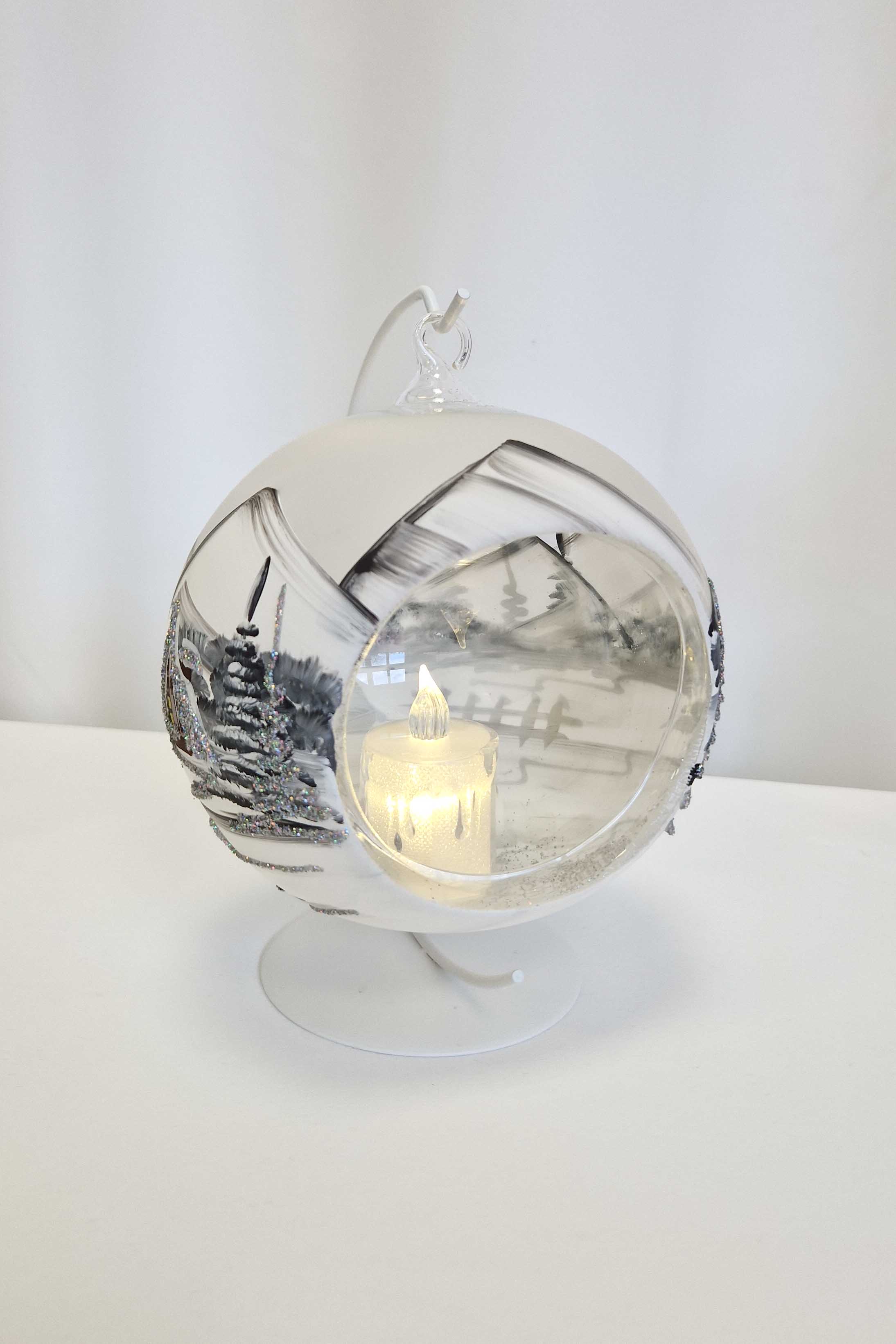 Bombka Świąteczna ze Szkła z Zimowym Pejzażem z Miejscem na Świeczkę