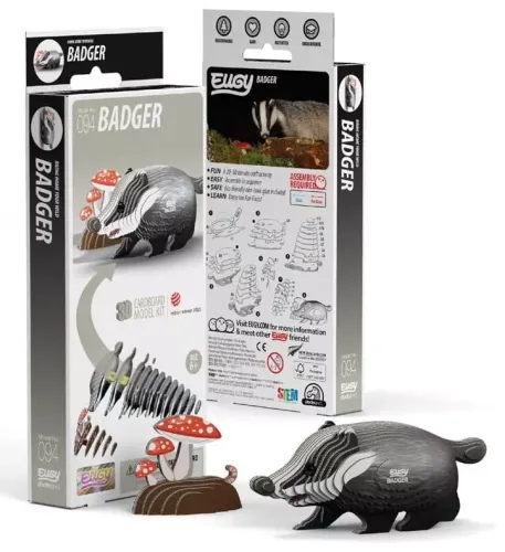 Eugy zaprojektowane w Nowej Zelandii są wykonane z przyjaznego dla środowiska kartonu pochodzącego z recyklingu i farby na bazie ryżu. Zestaw zawiera 35 ponumerowanych elementów układanki, oczka, nietoksyczny klej oraz instrukcję do zbudowania figurki borsuka. Zbierz całą serię zwierząt, ptaków, dinozaurów i wiele innych. Dla dzieci w wieku 6 lat +.