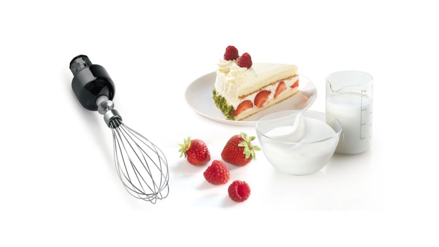 Końcówka miksująca oraz pozostałe elementy wyposażenia (poza blokiem z silnikiem i elementami z napędami) nadają się do mycia w zmywarce.