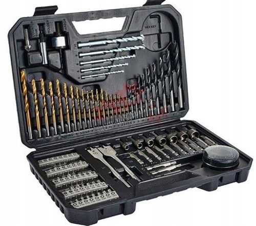 Zestaw zawiera wiertra do drewna, metalu, muru oraz liczne bity wkrętakowe dla wszystkich standardowych rodzajów łbów, a także przydatne akcesoria, takie jak klucz sześciokątny, adaptery i otwornice. To kompletne rozwiązanie dla każdego, kto ceni sobie wysoką jakość i wszechstronność narzędzi.