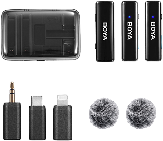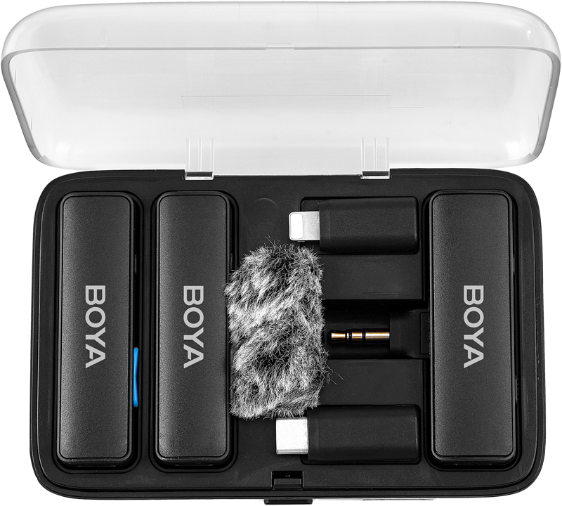 BOYALINK to bezprzewodowy system mikrofonowy z dwoma kanałami 2.4G. Wyposażony w złącza USB-C, Lightning i 3,5 mm TRS, BOYALINK jest najlepszym rozwiązaniem dla twórców treści, którzy wymagają wysokiej jakości nagrywania dźwięku bez kłopotów z wieloma złączami lub adapterami.