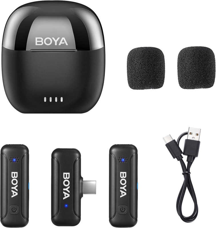 BY-WM3T-U2 to ultrakompaktowy bezprzewodowy system mikrofonowy 2,4 GHz, idealny do tworzenia treści, transmisji na żywo, vlogowania i wielu innych zastosowań. Posiada dwa nadajniki i jeden odbiornik USB-C, zapewniając kompatybilność z telefonami z systemem Android, tabletami i innymi urządzeniami USB-C. Co więcej, odbiornik USB-C może zasilać urządzenia i ładować się w locie za pomocą dołączonego etui, co zapewnia dodatkową wygodę.