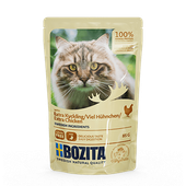 Mokra karma Bozita przeznaczona jest dla kotów na każdym etapie rozwoju. Wszystkie składniki są naturalne, świeże i pochodzą prosto ze szwedzkiej wsi lub dzikich obszarów, posiadają w składzie aminokwasy, witaminy i minerały dla zagwarantowania dobrego samopoczucia Twojego kota. Karma o smaku kurczaka.