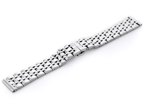 Stalowa bransoletka z zapięciem motylkowym do zegarka wysokiej jakości w kolorze srebrnym.