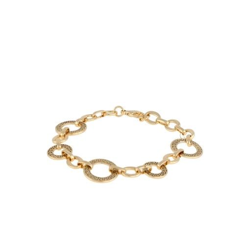 Bransoletka w kolorze złotym, koła o wytłaczanym wzorze greckim.* Warstwa złota naniesiona w metodzie electroplated * Pokryte jest w całości 4 - 8 mikronową warstwą 14K, 18K i 24K złota * Warstwa złocenia pokryta jest lakierem jubilerskim, który zabezpiecza powłokę złota przed ścieraniem i nadaje wspaniały połysk * Biżuteria wykonana ze stali szlachetnej-należy do grupy stali o strukturze austenitycznej ( podobna chirurgiczna 316 L) : - jest hipoalergiczna i nie uczula, ponieważ nie emituje związków niklu do organizmu - nie koroduje, nie odbarwia się i długo cieszy swoim blaskiem - ścieralność uzależniona od noszenia i od pH ciała - nie wymaga specjalnej konserwacji jak biżuteria ze srebra, czy złota